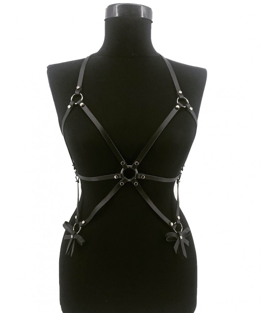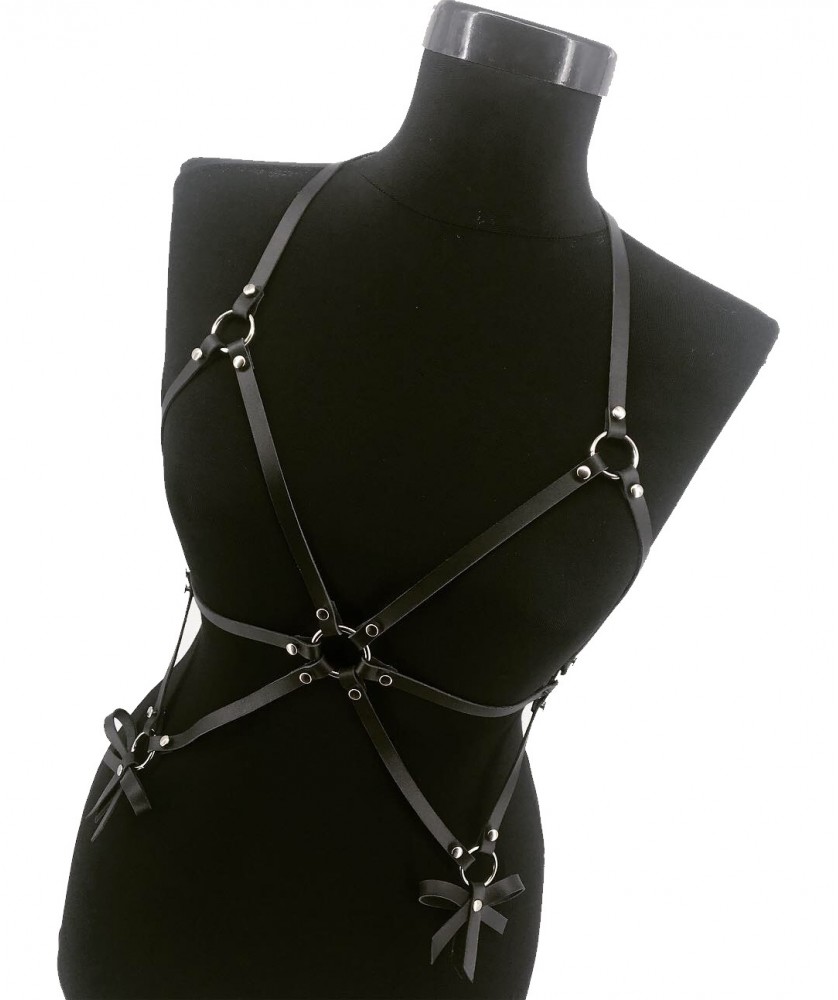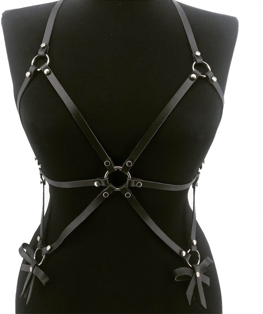 Accesoriu din piele naturala pentru corp , lucrat manual in Romania , ce este accesorizat cu capse si fundite , poarta acest produs si sigur vei intoarce toate privirile