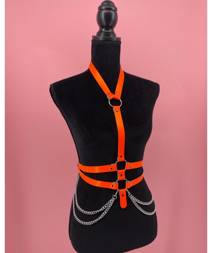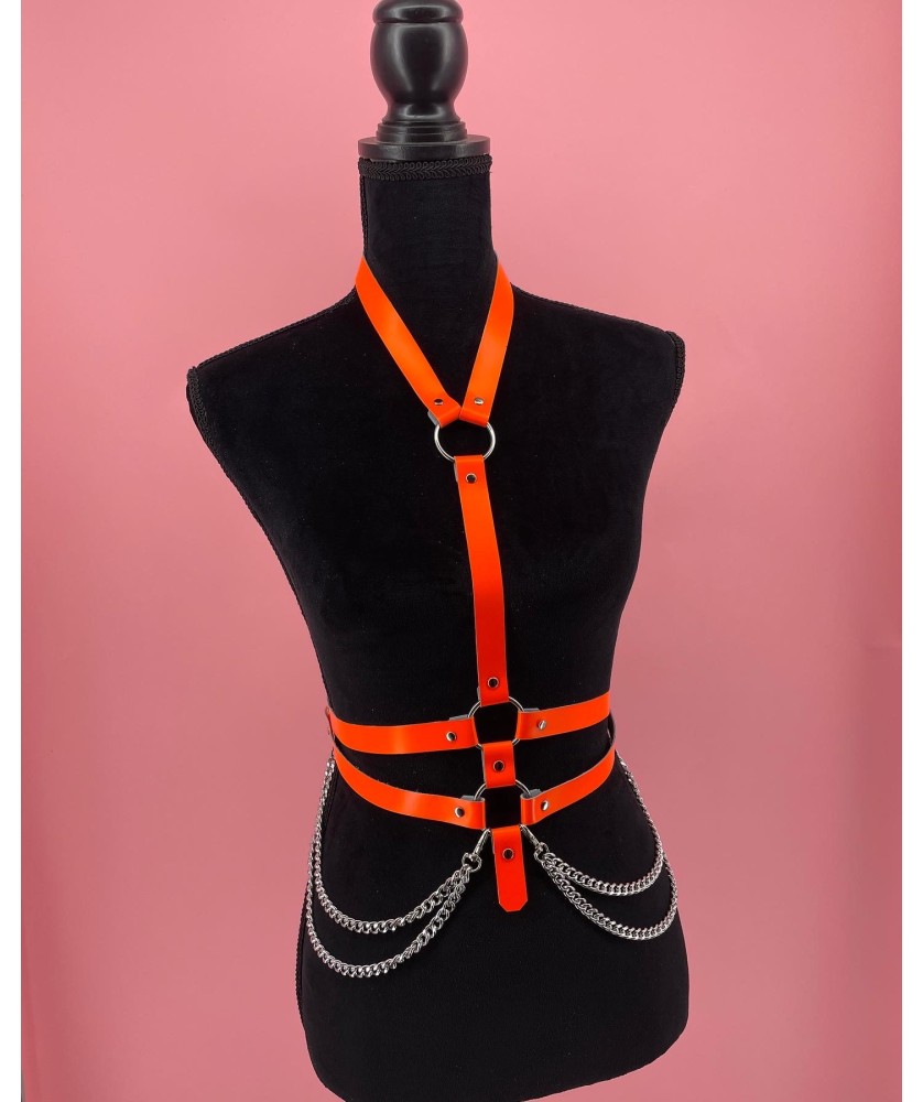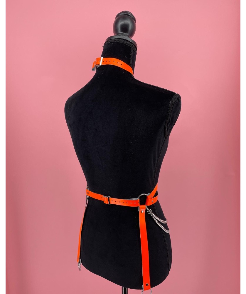 Accesoriu sau ham din piele naturala pentru corp , lucrat manual in Romania accesorizat cu lant (lantul este detasabil) , poarta acest produs si sigur vei intoarce toate privirile